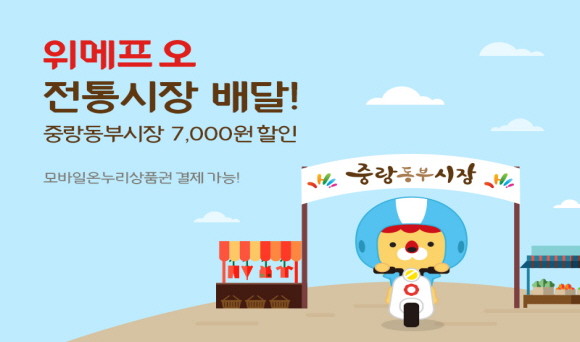 위메프 오가 서울 중랑구 중랑동부시장 배달 서비스를 시작으로 '전통시장 배달'에 본격 나선다.