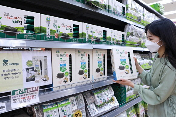 롯데마트가 ESG경영의 일환으로 간편한 밥반찬의 대명사인 '조미김'의 '플라스틱 트레이'를 없앴다. © 롯데마트