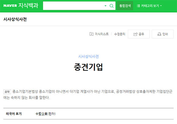 [프라임경제] 네이버 시사상식사전에 따르면 중견기업은 중소기업기본법상 중소기업이 아니면서 대기업 계열사가 아닌 기업으로, 공정거래법상 상호출자제한 기업집단군엔 속하지 않는 회사를 말한다고 밝히고 있습니다.