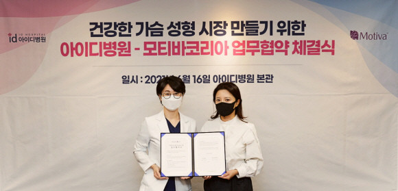 아이디병원과 모티바코리아가 건강한 가슴 성형 시장 만들기를 위해 업무 제휴 협약(MOU)을 체결했다.