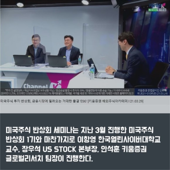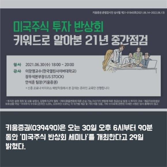[프라임경제] 키움증권(039490)은 오는 30일 오후 6시부터 90분 동안 '미국주식 반상회 세미나'를 개최한다고 29일 밝혔다.