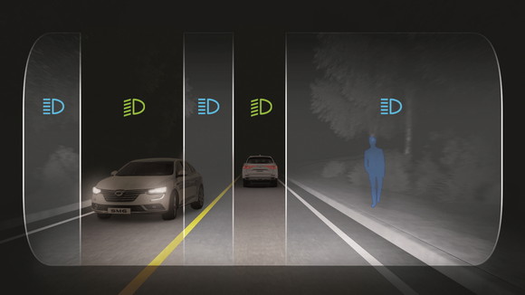 LED 매트릭스 헤드램프는 빛이 필요한 모든 곳을 비추는 라이트 기술인데, 빛이 필요하지 않은 곳은 비추지 않는다. 단순히 다른 차를 감지해 하이빔 기능을 끄고 켜는 하이빔 어시스트에서 한 단계 더 진화한 기능이다.