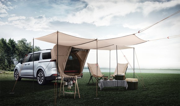 아웃도어 트림은 2열에 프리미엄 릴렉션 시트 대신 매뉴얼 시트를 적용하고 2열 시트의 전방 슬라이딩 길이를 늘렸다. 이를 통해 신장 180㎝의 성인 2명이 누울 수 있는 2열 후방공간을 추가로 확보했다. 더불어 기아는 카니발의 공간 활용성을 더욱 높여줄 △텐트 △멀티 커튼 △에어 매트 등 캠핑과 차박에 활용할 수 있는 용품을 기아멤버스 카앤라이프몰에서 판매한다.
