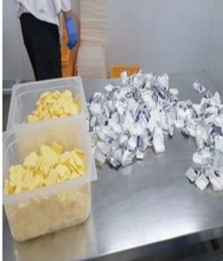 유통기한이 경과한 버터를 이용해 기내식용 '크렌베리, 호박, 한라봉, 라즈베리 등 5종' 제조. © 식약처