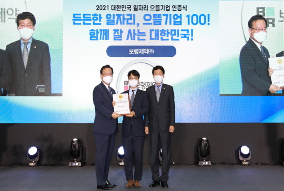 ◆보령제약 '2021 대한민국 일자리 으뜸기업' 선정