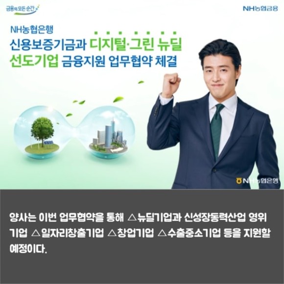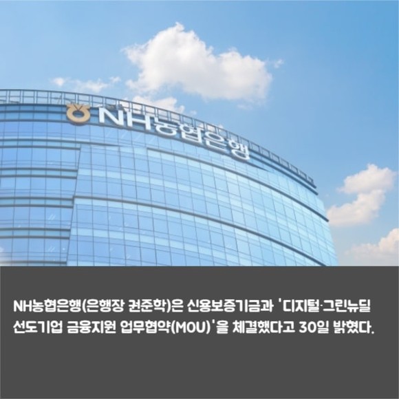 [프라임경제] NH농협은행(은행장 권준학)은 신용보증기금과 '디지털·그린뉴딜 선도기업 금융지원 업무협약(MOU)'을 체결했다고 30일 밝혔다.
