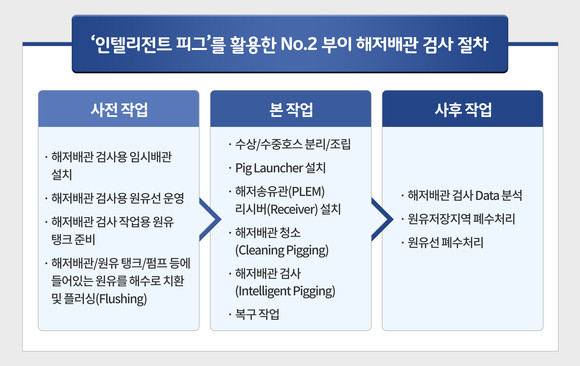 인텔리전트 피그를 활용한 No.2 부이 해저배관 검사 절차. ⓒ SK에너지