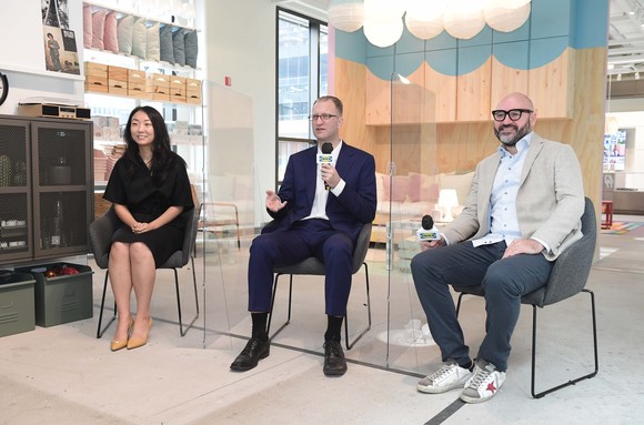 26일 진행된 이케아 온라인 기자간담회에서 이케아 코리아 프레드릭 요한손 대표(가운데)와 니콜라스 욘슨 커머셜 매니저(오른쪽), 박지혜 컨슈머 인사이트 매니저(왼쪽)가 기자들의 질문에 답변하고 있다. ⓒ 이케아코리아