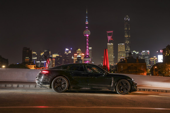 중국 상하이 배경의 포르쉐 타이칸. ⓒ 포르쉐코리아