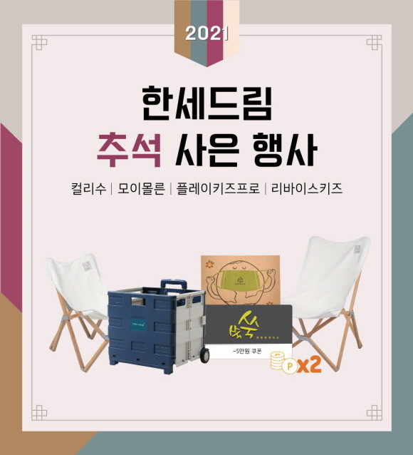 이번 프로모션은 한세드림에 많은 관심을 보내는 고객들의 성원에 보답하기 위해 마련됐다. 이벤트는 각 브랜드마다 상이하게 진행되며, 9월 한 달간 꾸준하게 이어질 예정이다. 특히 컬리수와 모이몰른은 최근 떠오르고 있는 캠핑 트렌드에 맞춰 폴딩카트, 캠핑의자 등 다양한 활용이 가능한 특별 사은품도 함께 준비했다.