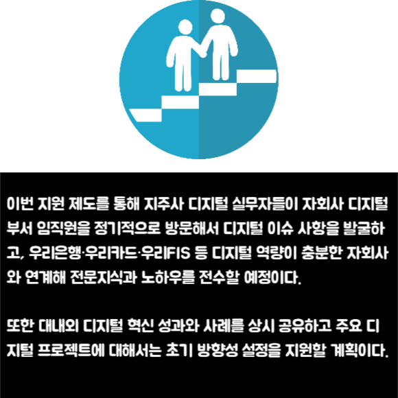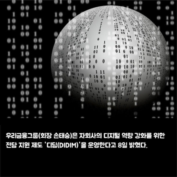 [프라임경제] 우리금융그룹(회장 손태승)은 자회사의 디지털 역량 강화를 위한 전담 지원 제도 '디딤(DIDIM)'을 운영한다고 8일 밝혔다.