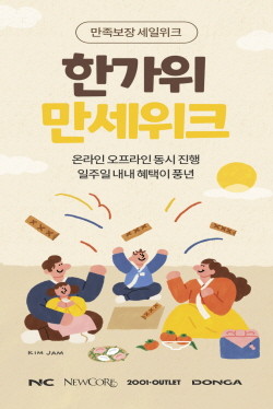 이랜드리테일에서 운영하는 NC, 뉴코아, 이천일아울렛, 동아 등 도심형 아울렛 전 지점과 온라인 쇼핑 플랫폼 이랜드몰이 오는 9월8일부터 일주일간 역대급 할인 혜택을 담은 '만족 보장 세일 위크, 만세위크'를 진행한다.