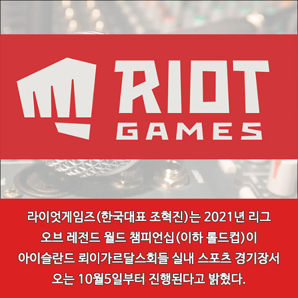 [프라임경제] 라이엇 게임즈(한국대표 조혁진)는 2021년 리그 오브 레전드 월드 챔피언십(이하 롤드컵)이 아이슬란드 뢰이가르달스회들 실내 스포츠 경기장서 오는 10월5일부터 진행된다고 밝혔다.