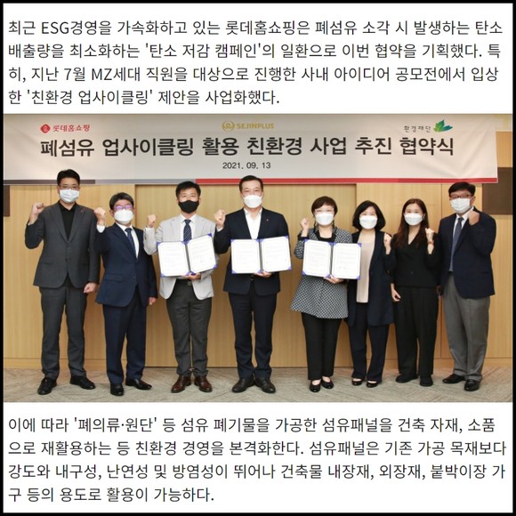 [카드] 롯데홈쇼핑, 폐섬유 업사이클링 업무협약
