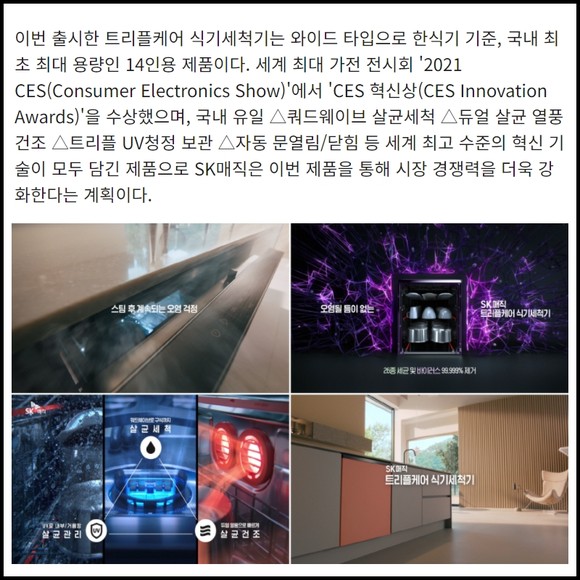 SK매직 '트리플케어 식기세척기 와이드' 마케팅 본격화