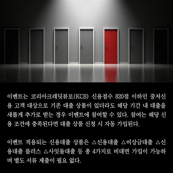 [카드] 케이뱅크, 중저신용 대상 대출 이벤트 실시