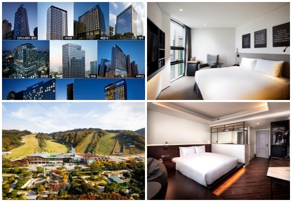 (왼쪽부터 시계방향) 신라스테이 온 유어 신라스테이, 글래드호텔 어썸 어텀 패키지·그린 호캉스 시즌2 패키지, 컴퍼니합 소노호텔&리조트 비발디 파크 패키지. © 각 사