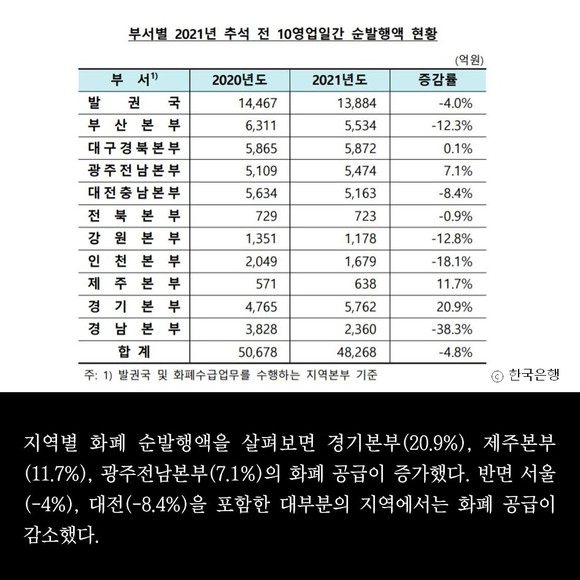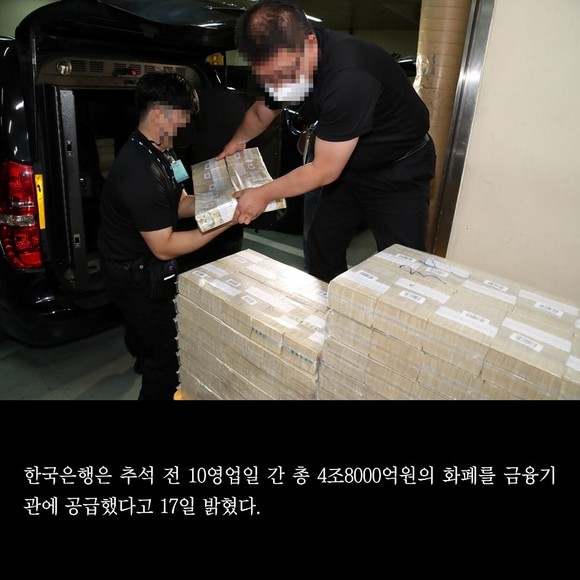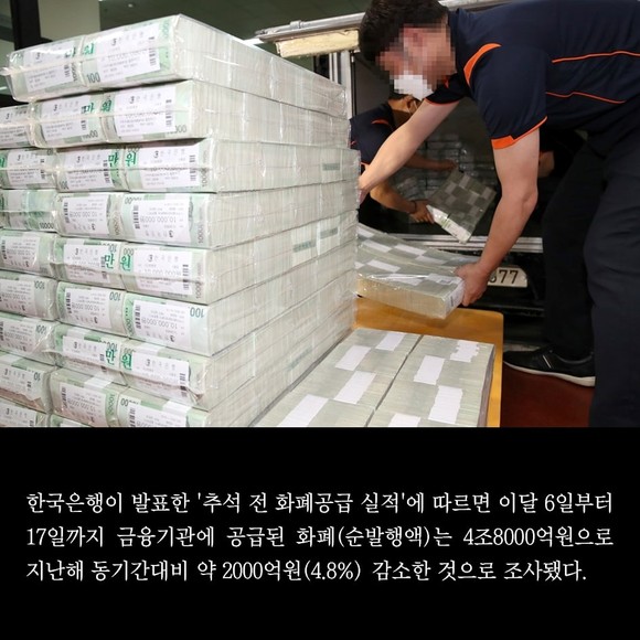 [프라임경제] 한국은행은 추석 전 10영업일 간 총 4조8000억원의 화폐를 금융기관에 공급했다고 17일 밝혔다.