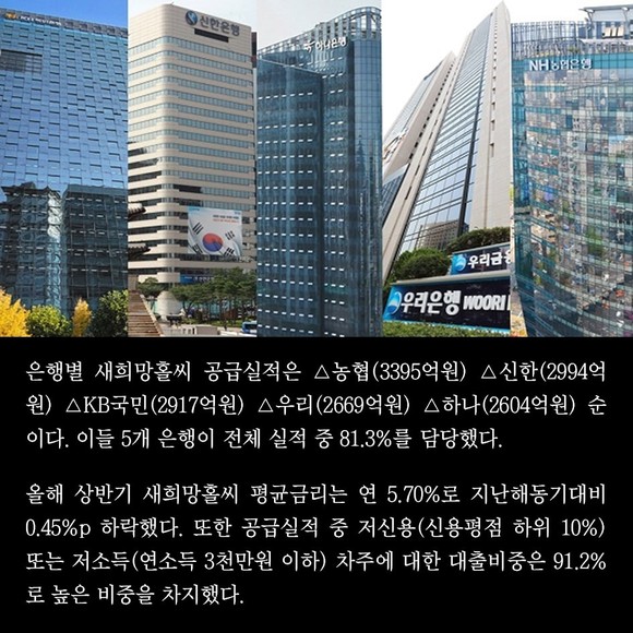 [프라임경제] 서민과 취약계층을 위한 정책대출상품인 새희망홀씨 대출공급이 올해 상반기 공급목표 절반을 넘어섰다.