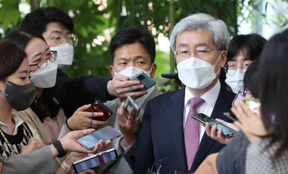고승범 금융위원회 위원장이 지난 14일 오전 만난 취재진에게 "전세 대출에 대해서는 총량 관리를 하는 데 있어 유연하게 대응하도록 할 생각"이라며 "전세 대출 증가로 인해 가계대출 잔액 증가율 목표가 6%대로 증가하더라도 용인하려고 한다"라고 발언했다. © 연합뉴스