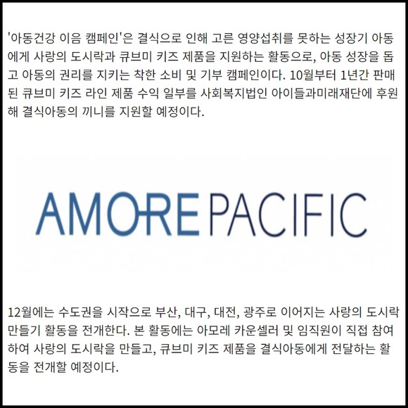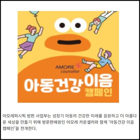 [카드] 아모레퍼시픽 방문판매 '아동건강 이음 캠페인' 전개