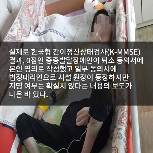 [프라임경제] 정부가 추진하고 있는 장애인 탈시설 로드맵이 시행되고 있는 가운데 무연고 중증발달장애인의 퇴소동의서가 본인 의사 없이 대리로 작성됐다는 주장이 나왔다.