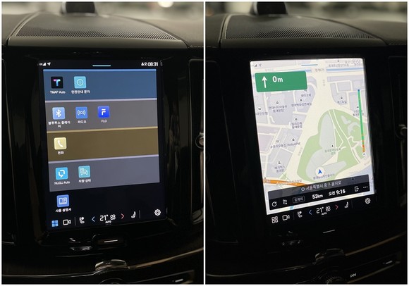 신형 XC60은 내비게이션 티맵(Tmap)과 AI 플랫폼 누구(NUGU), 사용자 취향 기반 음악 플랫폼 플로(FLO)를 통합한 개인 맞춤화된 혁신적인 커넥티비티 서비스를 제공한다. = 노병우 기자
