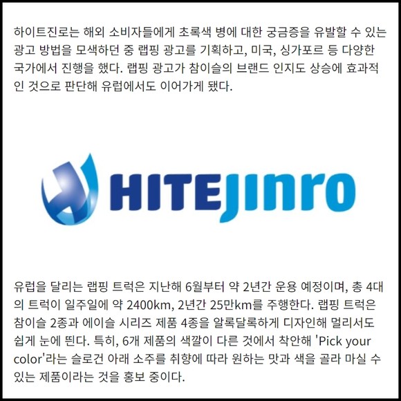 [카드] 하이트진로, 참이슬 랩핑 트럭 "유럽에 소주 알리다"