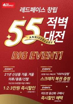 레드페이스가 창립 55주년을 맞아 올 한 해 동안 사랑과 성원을 보내준 고객들에게 감사한 마음을 전하기 위해 특별한 '적벽대전 이벤트'를 준비했다.