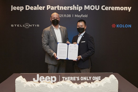제이크 아우만 스텔란티스 코리아 사장은 "국내 프리미엄 수입차시장의 유통 사업을 이끌어오며 풍부한 경험과 노하우를 가진 코오롱과 KCC가 지프의 가족이 된 것을 진심으로 환영한다"고 말했다.