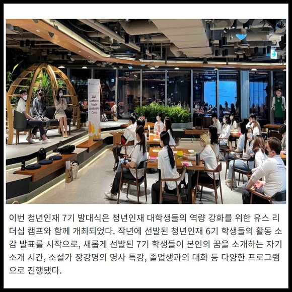 [프라임경제] 스타벅스커피 코리아가 커뮤니티 스토어를 통해 후원하는 청년인재 7기 대학생 10명을 새로 선발하고 8일 스타벅스 지원센터에서 발대식을 진행했다.
