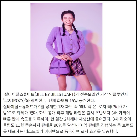 [프라임경제] LF의 영캐주얼 브랜드 질바이질스튜어트(JILL BY JILLSTUART)가 전속모델인 가상 인플루언서 '로지(ROZY)'와 함께한 두 번째 화보를 15일 공개한다.
