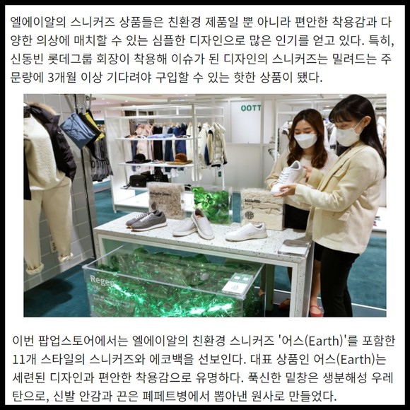 [프라임경제] '친환경 운동화'로 유명세를 탄 '엘에이알(LAR) 스니커즈'가 친환경에 진심인 롯데백화점에 등장했다.