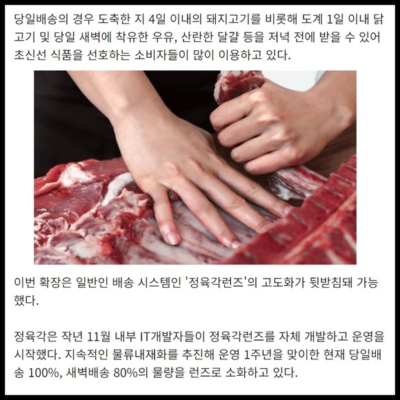 [프라임경제] 정육각이 '당일배송' 서비스 권역을 대규모로 확장한다.