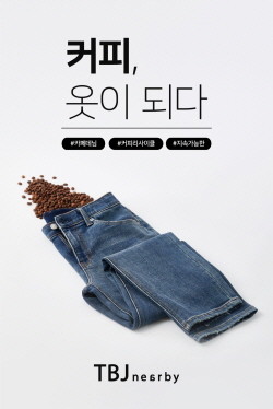 한세엠케이의 베이직 트렌디 캐주얼 브랜드 TBJ는 친환경 소비 트렌드에 발맞춰 커피 찌꺼기를 100% 리사이클링한 '카페 데님' 팬츠를 출시했다.