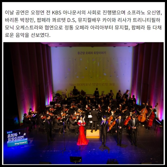 [프라임경제] 종근당홀딩스는 지난 27일 세종문화회관 M씨어터에서 오페라 희망이야기 콘서트 'Sing Hopera! 일상으로의 초대'를 개최했다.