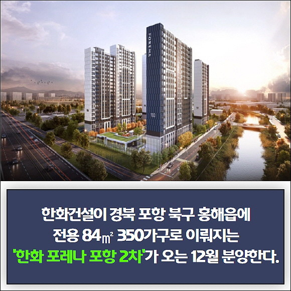 [프라임경제] 한화건설(시공)과 삼도주택(시행)이 포항 북구 홍해읍 학천리에 공급하는 '한화 포레나 포항 2차'가 오는 12월 분양에 나선다.