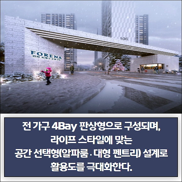 지난 4월 포항 최다청약자가 몰린 '포레나 포항'에 이어 KTX포항역세권 개발 지역에 공급하는 후속 단지인 '포레나 포항 2차'는 전 세대 선호도 높은 전용면적 84㎡ 단일주택형으로 총 350가구로 이뤄진다.