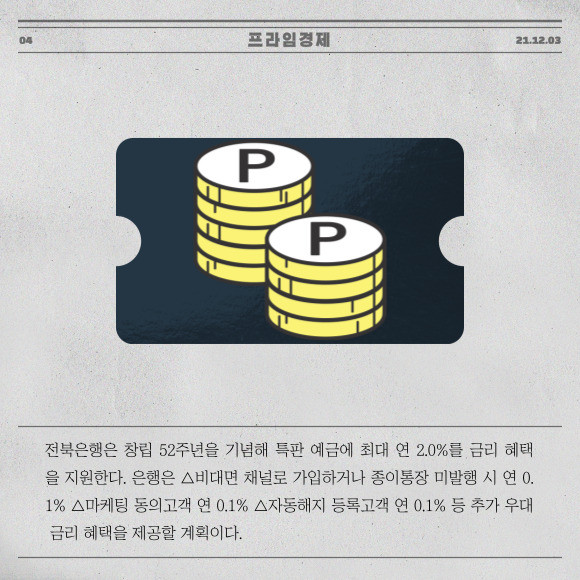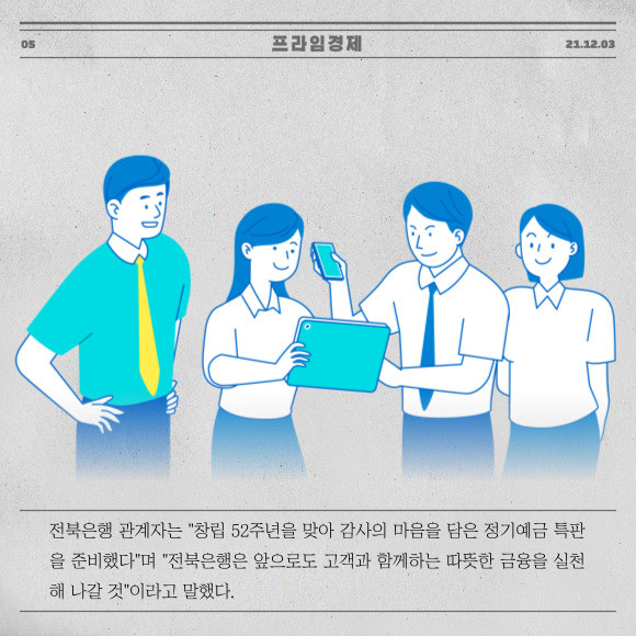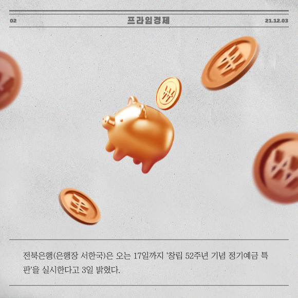 [프라임경제] 전북은행(은행장 서한국)은 오는 17일까지 '창립 52주년 기념 정기예금 특판'을 실시한다고 3일 밝혔다.