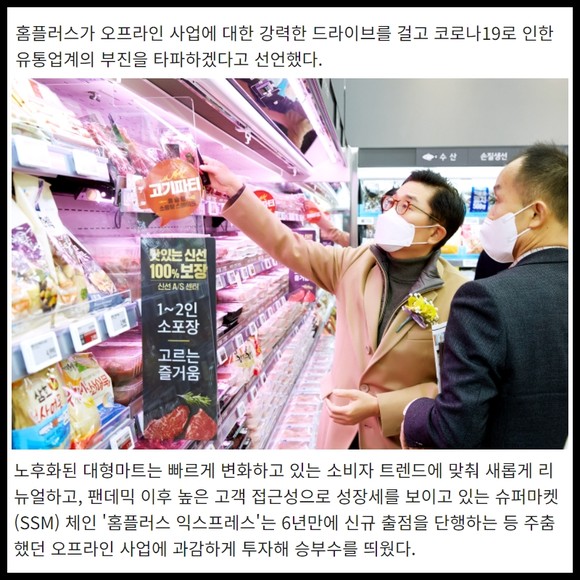 [프라임경제] 홈플러스가 오프라인 사업에 대한 강력한 드라이브를 걸고 코로나19로 인한 유통업계의 부진을 타파하겠다고 선언했다.