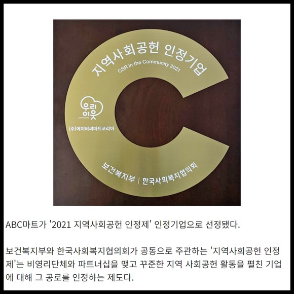 [카드] ABC마트 '지역사회공헌 인정제' 인정기업 선정