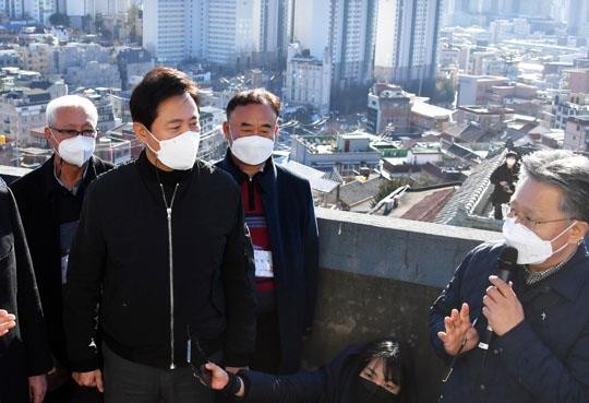 오세훈 서울시장이 지난 13일 신속통합기획 대상지 미아4-1구역을 방문해 재건축 추진 상황을 점검하고 있다. ⓒ 서울시