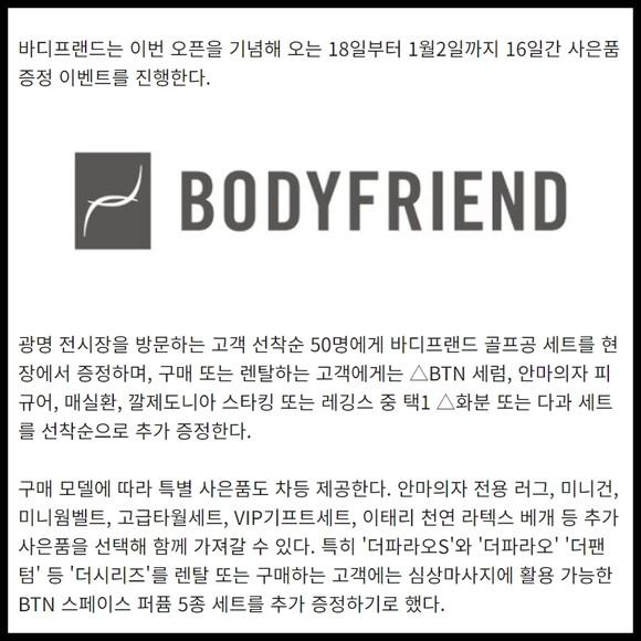 [카드] 바디프랜드, 광명 지역에 직영 전시장 오픈