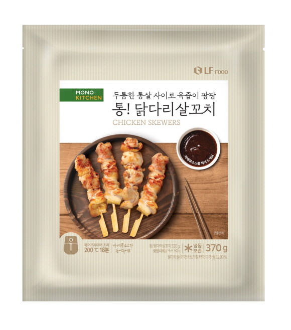 LF푸드의 HMR 브랜드 모노키친은 '통! 닭다리살 꼬치'를 출시했다.