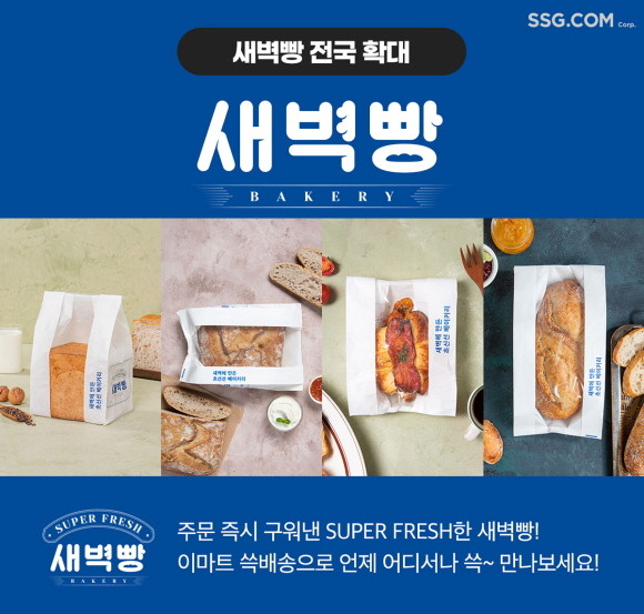 SSG닷컴은 신세계푸드에서 개발한 베이커리 상품을 이마트 매장에서 직접 구워낸 뒤 당일 쓱배송으로 고객에게 판매하는 '새벽빵' 서비스의 범위를 기존보다 넓혀 전국 81개 PP센터를 통해 실시한다. 다만 권역별로 배송 가능지역에 차이가 있으며, 배송이 불가한 경우에는 상품이 표시되지 않는다.