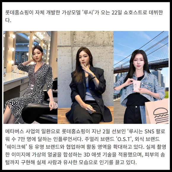 [프라임경제] 롯데홈쇼핑이 자체 개발한 가상모델 '루시'가 오는 22일 쇼호스트로 데뷔한다.