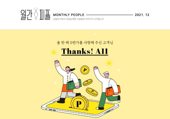'월간 피플' 코너는 매달 다른 주제로 각계 각층의 사람들의 이야기를 소개하고 이벤트나 캠페인을 실시하는 11번가만의 특별한 프로모션이다. 11번가는 '12월 월간 피플'의 주제를 '올 한 해 11번가를 사랑해주신 고객님'으로 정하고 참여 고객 모두가 연말 보너스 같은 쇼핑 혜택을 받을 수 있는 행사를 준비했다.
