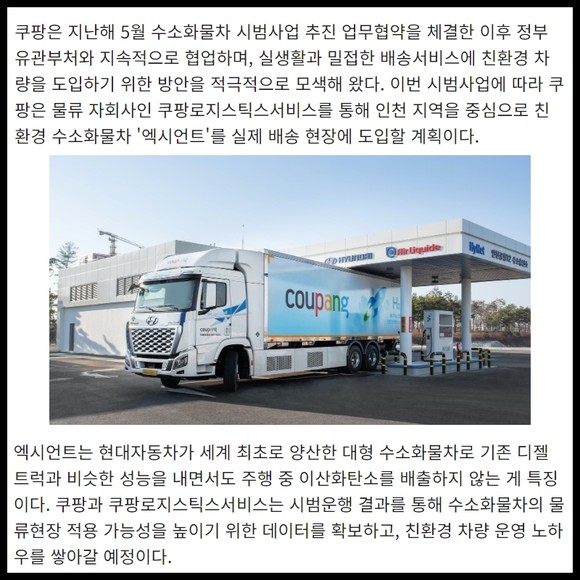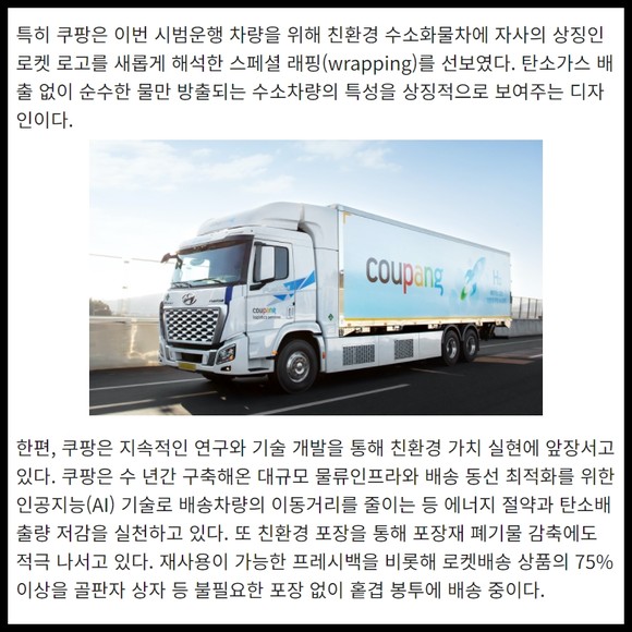 [카드] 쿠팡, 로켓배송도 '친환경 수소화물차'로 달린다
