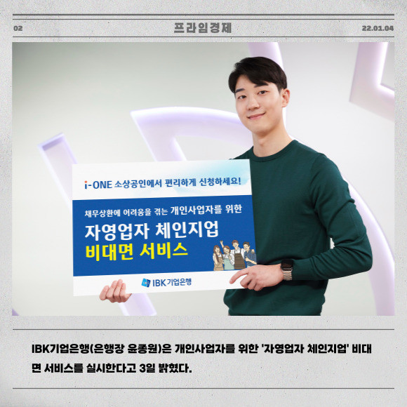 [프라임경제] IBK기업은행(은행장 윤종원)은 개인사업자를 위한 '자영업자 체인지업' 비대면 서비스를 실시한다고 3일 밝혔다.