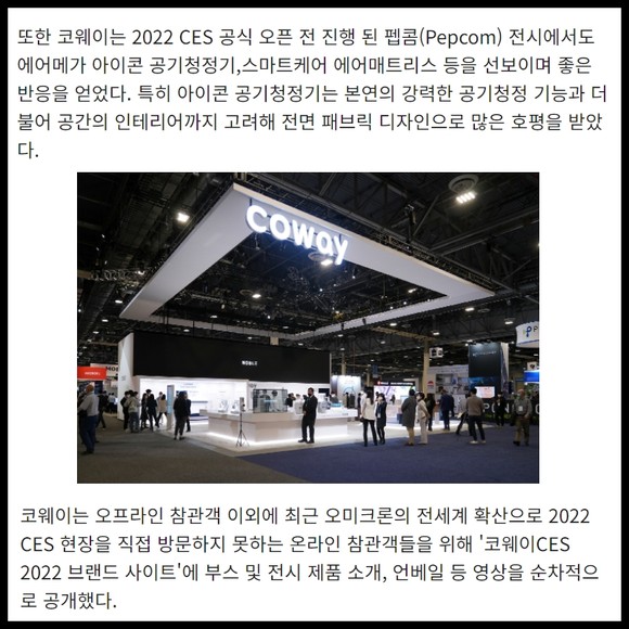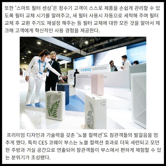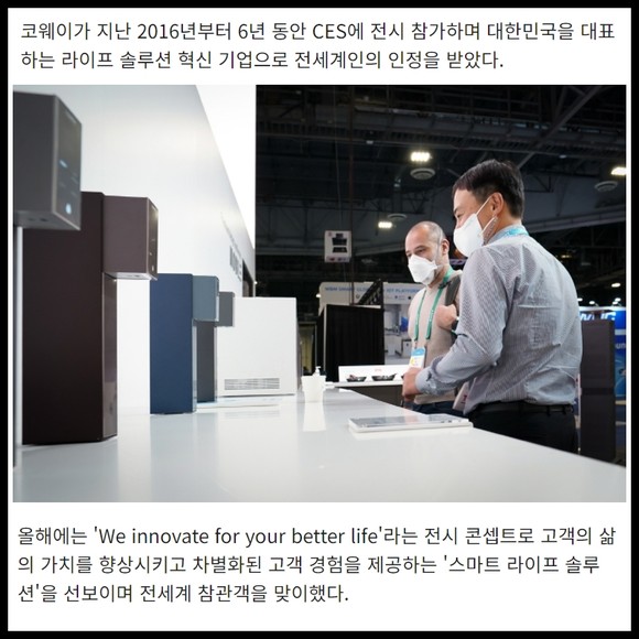 [카드] 코웨이, 세계 최대 가전쇼 CES 참가 '글로벌 혁신 기업' 호평